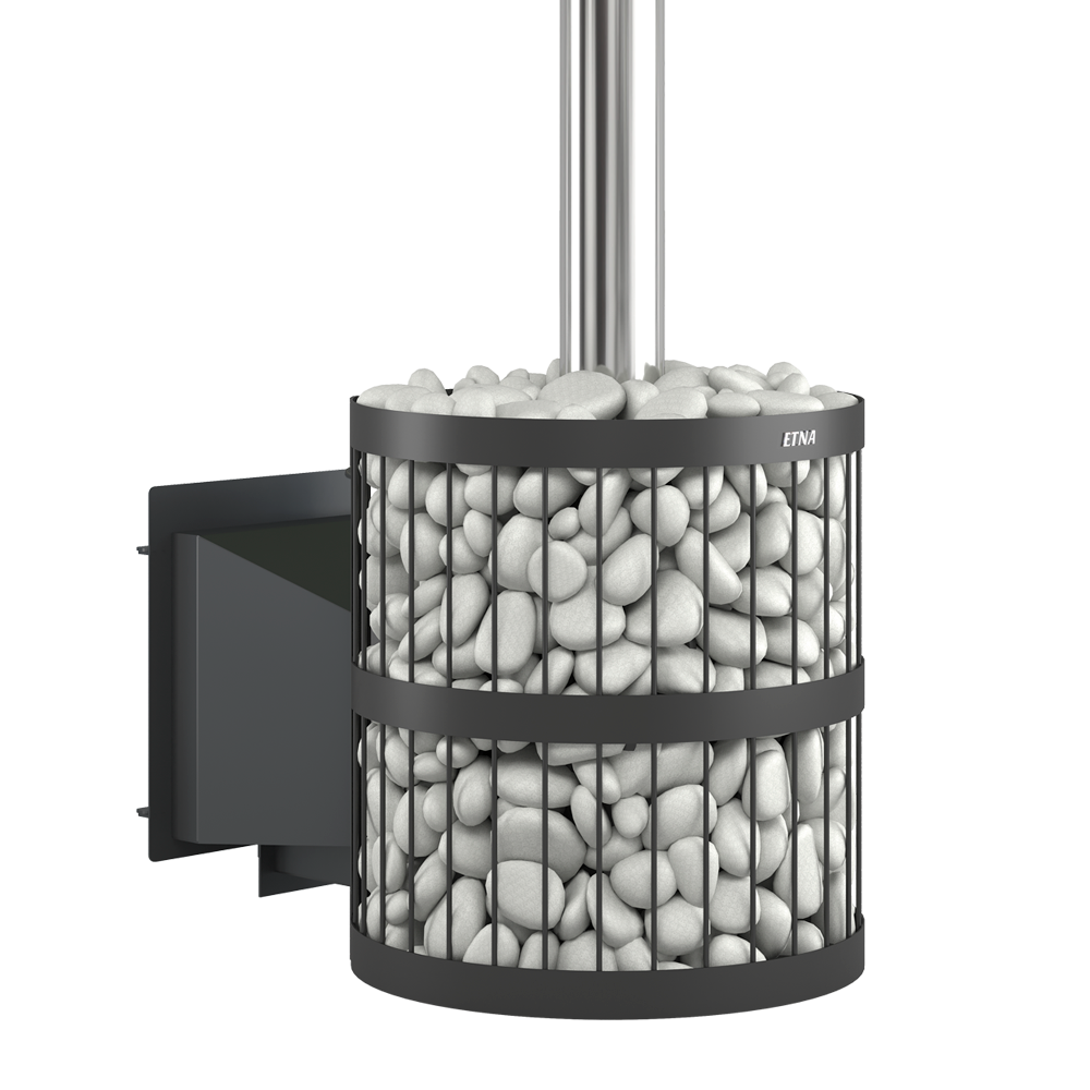 Чугунная банная печь ЭТНА 18 (Панорама) М рассчитана на работу в парной объёмом до 18 м3. Дверка из особо прочной котловой стали 09Г2С с панорамным стеклом. Для устройства наружной открытой каменки печь ЭТНА 18 оснащается металлическим кожухом с прорезным рисунком оригинального дизайна. Пространство между печью и кожухом из двухмиллиметровой стали заполняется камнями для бани, которые выполняют роль теплонакопителя и защищают парящихся от жёсткого инфракрасного излучения. Кожух диаметром 600 миллиметров вмещает в себя до 120 килограммов камней крупной и средней фракции.