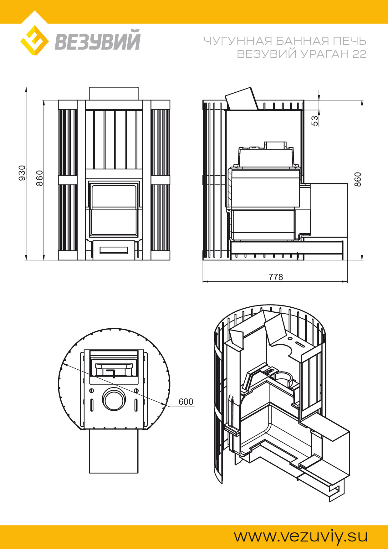 Договор заключается в момент оплаты Покупателем товара ТОЛЬКО в ОФЛАЙН-МАГАЗИНЕ. Делая предварительный заказ, Покупатель заверяет, что ознакомился и согласен с Политикой компании, она ему ясна и понятна.Печь для бани Везувий Ураган Ковка 22 (270)