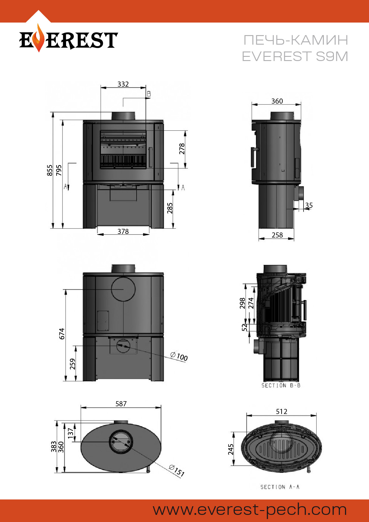 Печь-камин ЭВЕРЕСТ (EVEREST) S9M