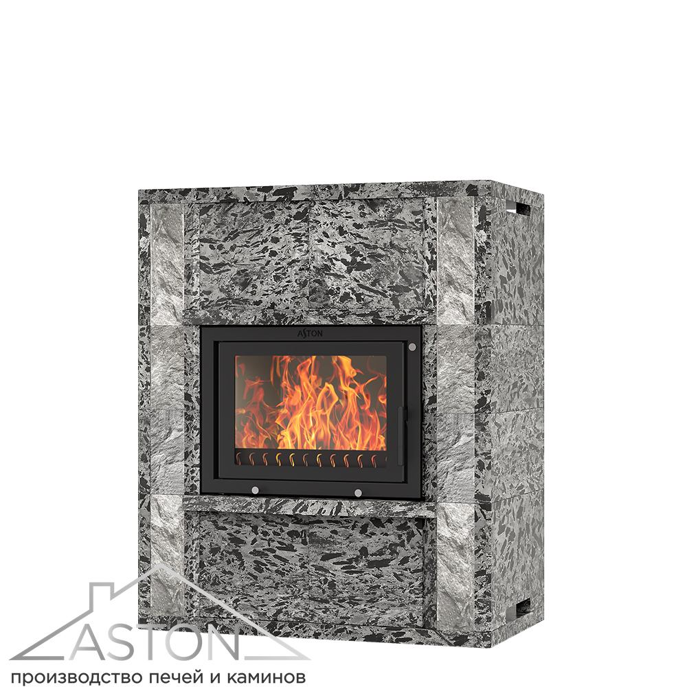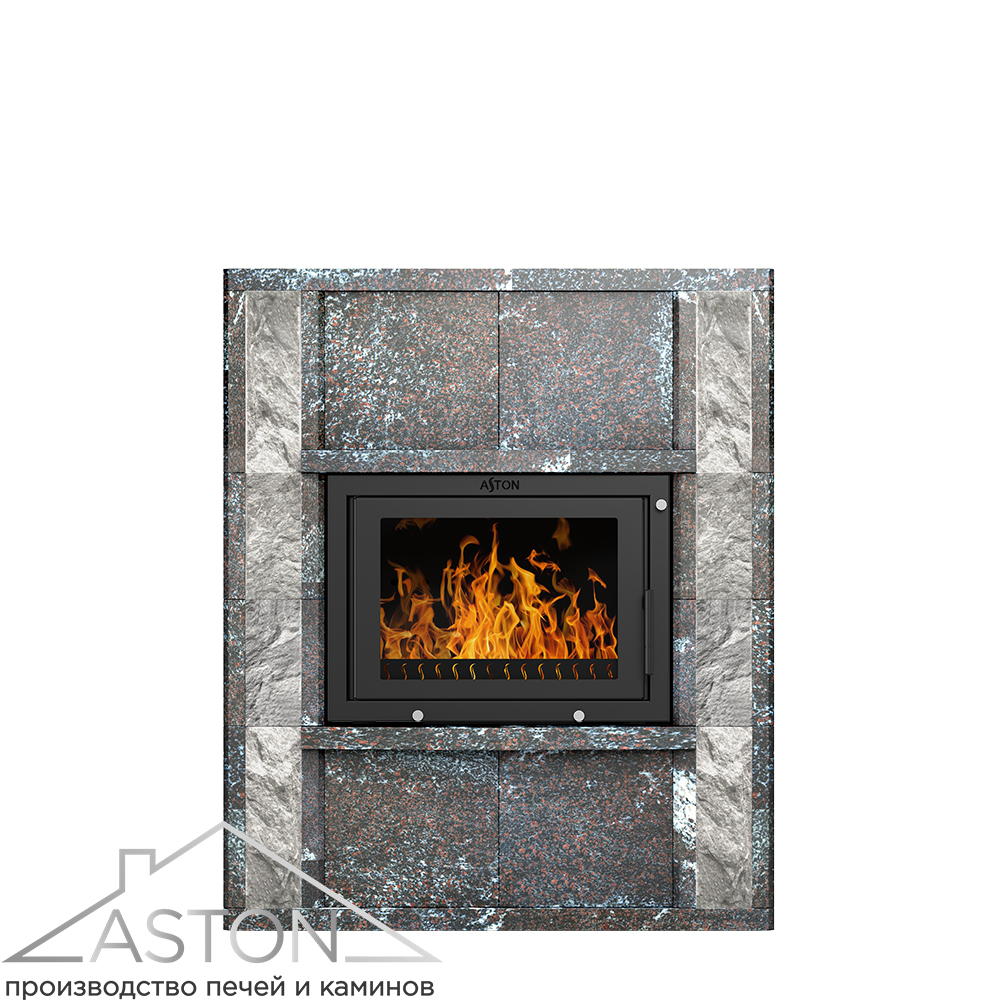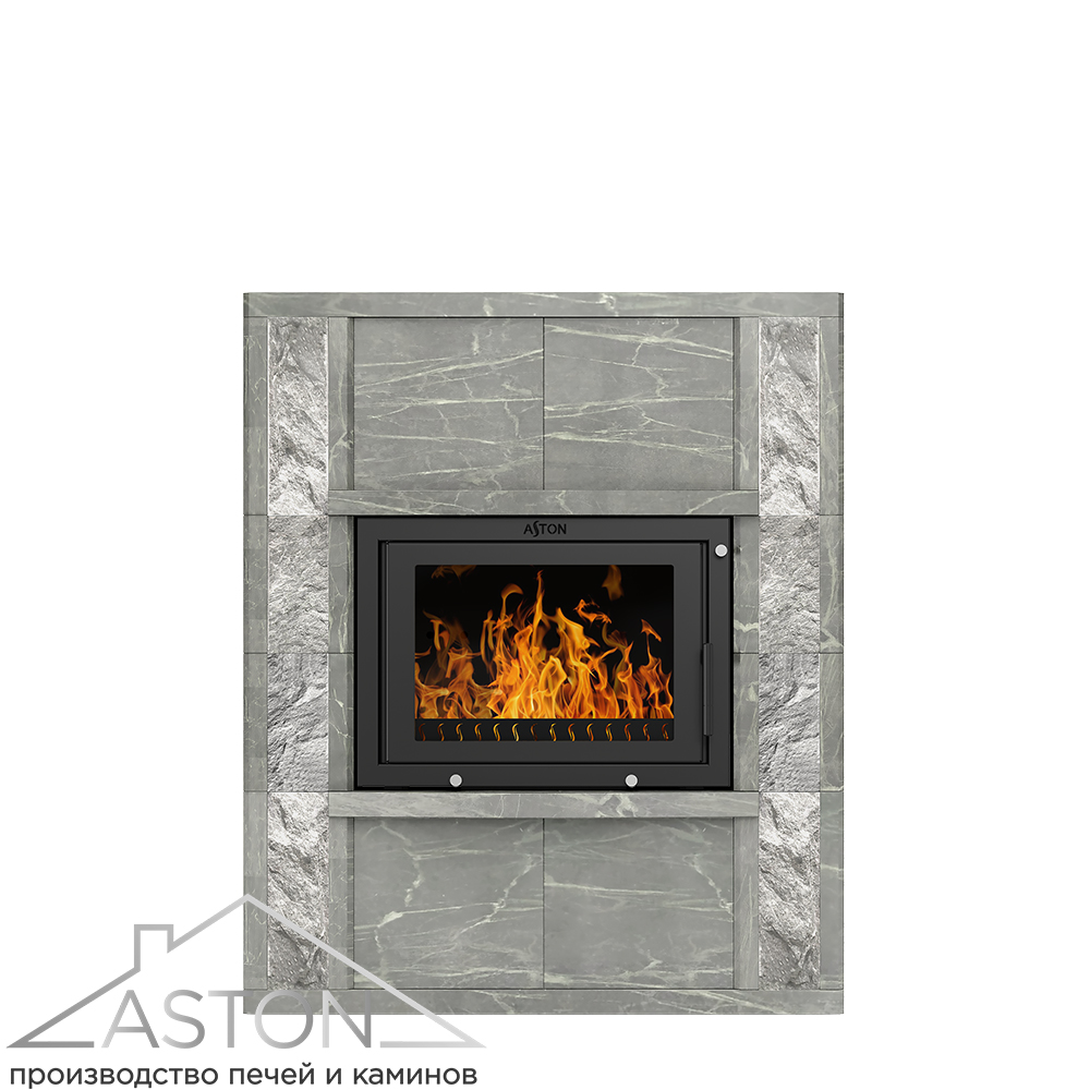 Облицовка сделана из натурального камня (на выбор: Пироксенит/Талькохлорит/Амфиболит), который быстро прогревается, хорошо держит тепло и обладает свойством медленно и равномерно отдавать энергию в окружающее пространство. Облицовка толщиной 40мм долго остаётся тёплой даже после окончания работы каминной топки.