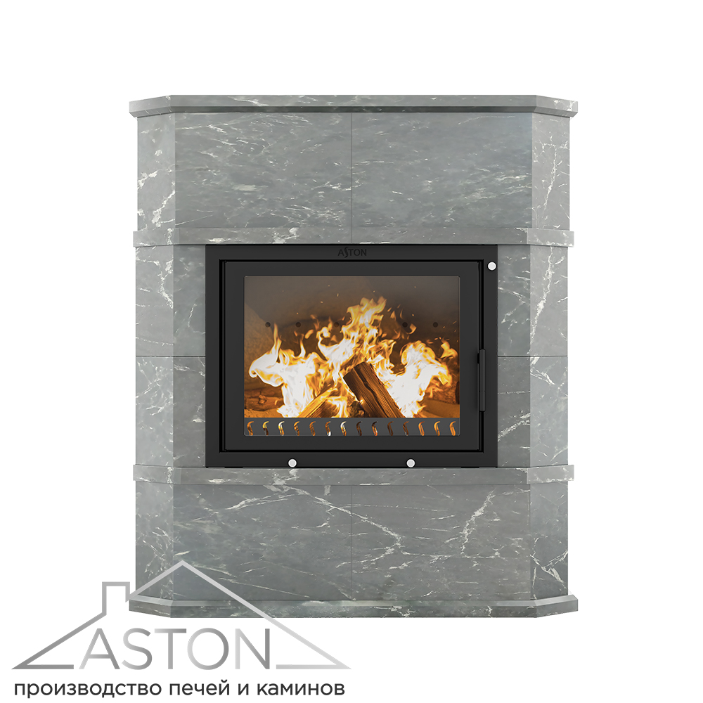 Камины облицованы натуральным камнем (на выбор: Пироксенит/Талькохлорит/Амфиболит) толщиной 40мм, который обладает невероятными теплоаккумулирующими свойствами. По своей теплопроводности и теплоёмкости этот камень в два с половиной раза превосходит привычный кирпич. Натуральный камень очень эффективно нагревается и долго держит тепло, постепенно передавая его в помещение.