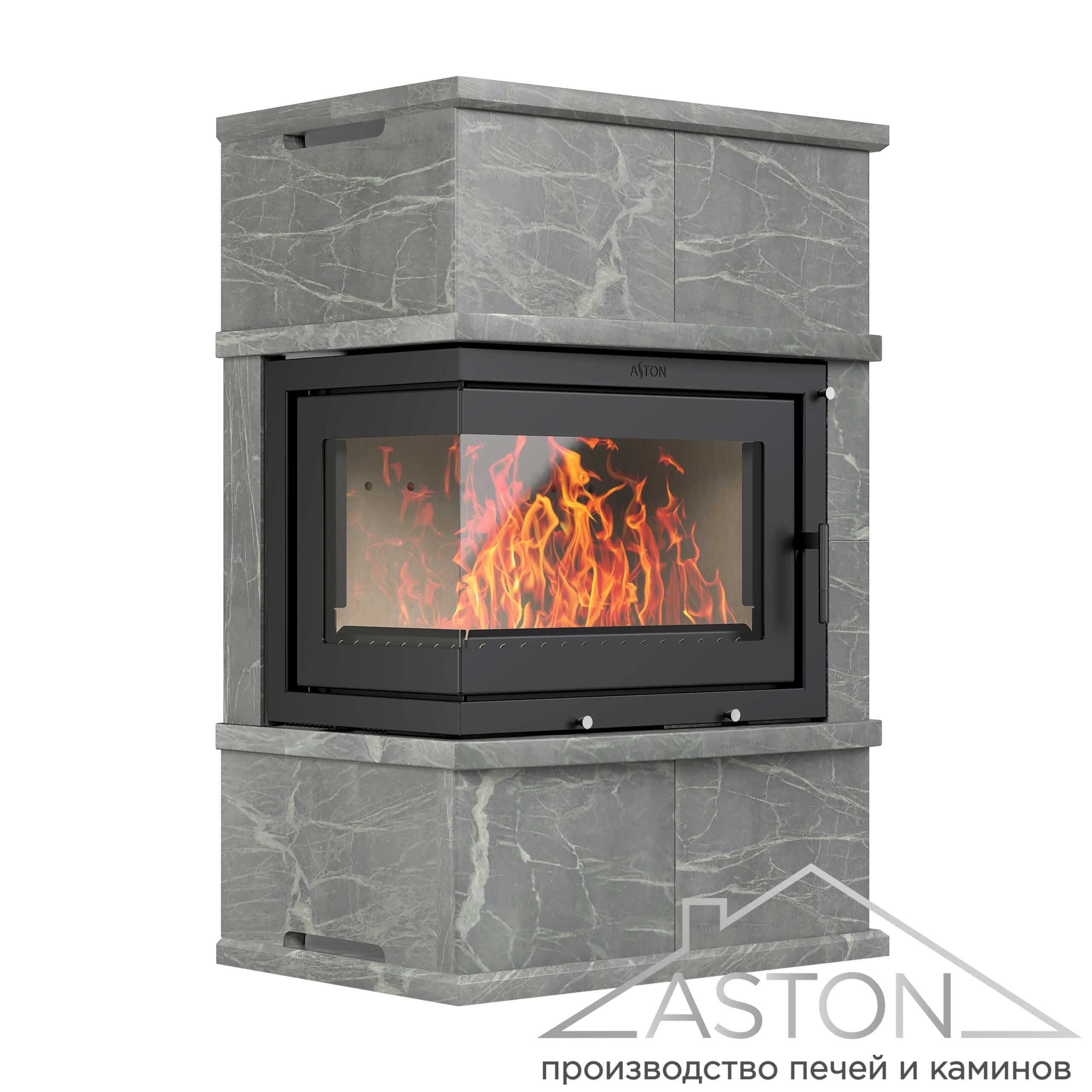 Топка Астон 700 внутри облицовки размещается на подставке. Топка, подставка и облицовка отлично походят друг к другу и не требуют дополнительной подгонки. Свободное пространство между топкой и облицовкой предназначено для движения нагретого воздуха. Именно за счёт конвекции быстро нагревается пространство, что уже в первые минуты работы топки обеспечивает тепло в помещении.