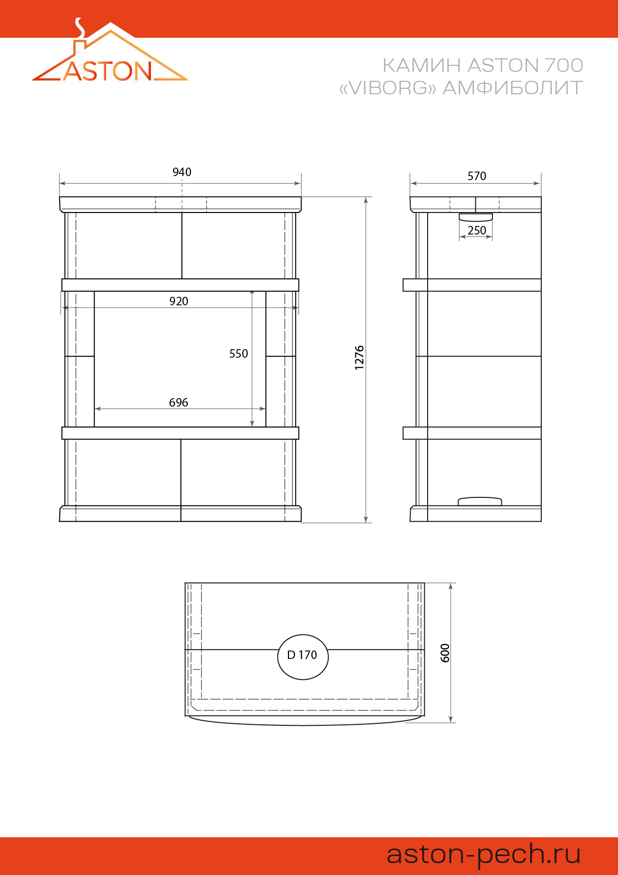 Камин АСТОН (ASTON) 700 «ВЫБОРГ» Н-1276