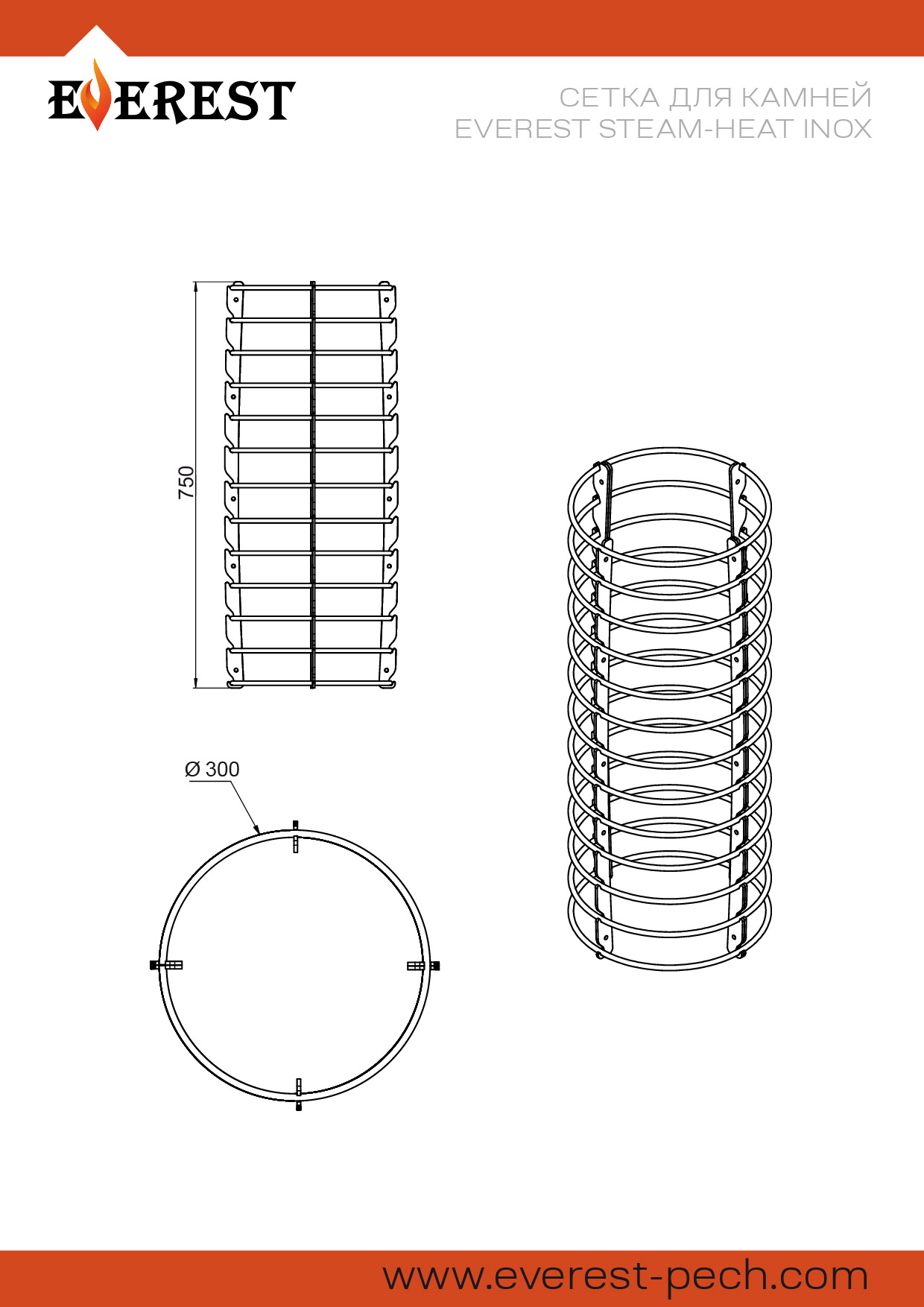 Сетка печи сетка Эверест Тепло пара (Steam Heat) изготовлена из нержавеющей стали (AISI 430) и предназначена для размещения вокруг стартового участка дымохода.