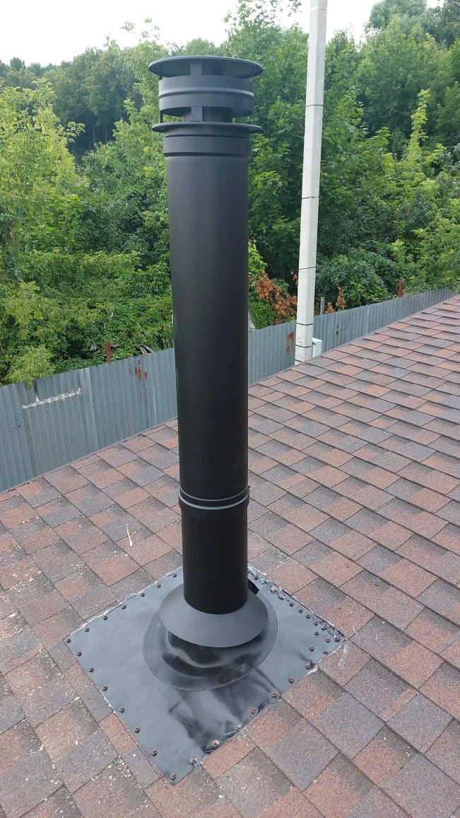 - Дымоход КПД ЧЕРНЫЙ в сборе с узлом прохода кровли.