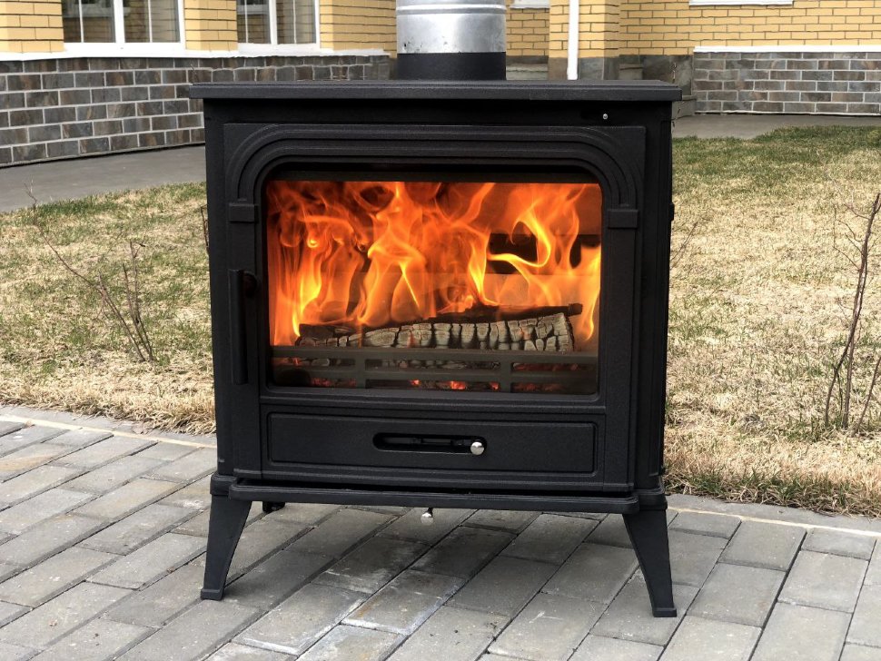 Три регулятора помогут установить необходимый режим работы печи и отапливать до 110 м2, а дымоход можно присоединить сверху или сзади.