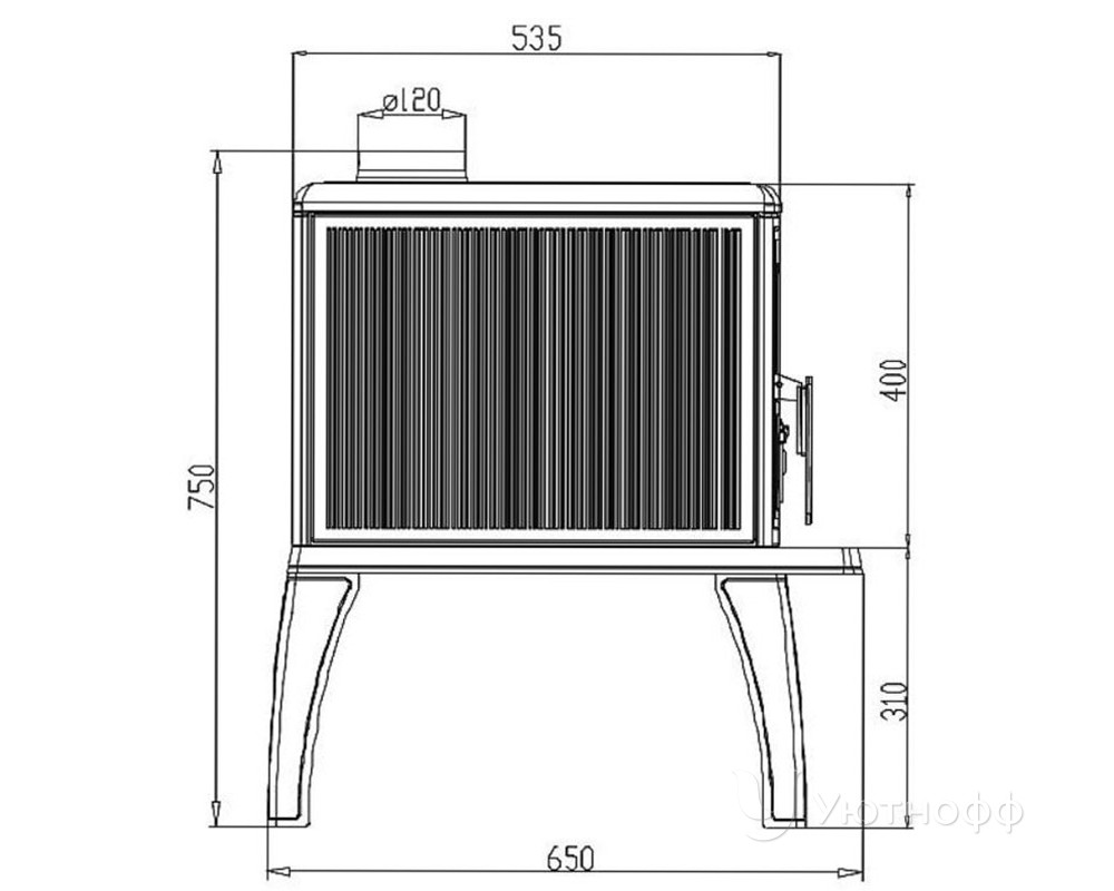 Под печь необходимо предусмотреть негорючее основание. Рекомендуем использовать листы под печь черного цвета.