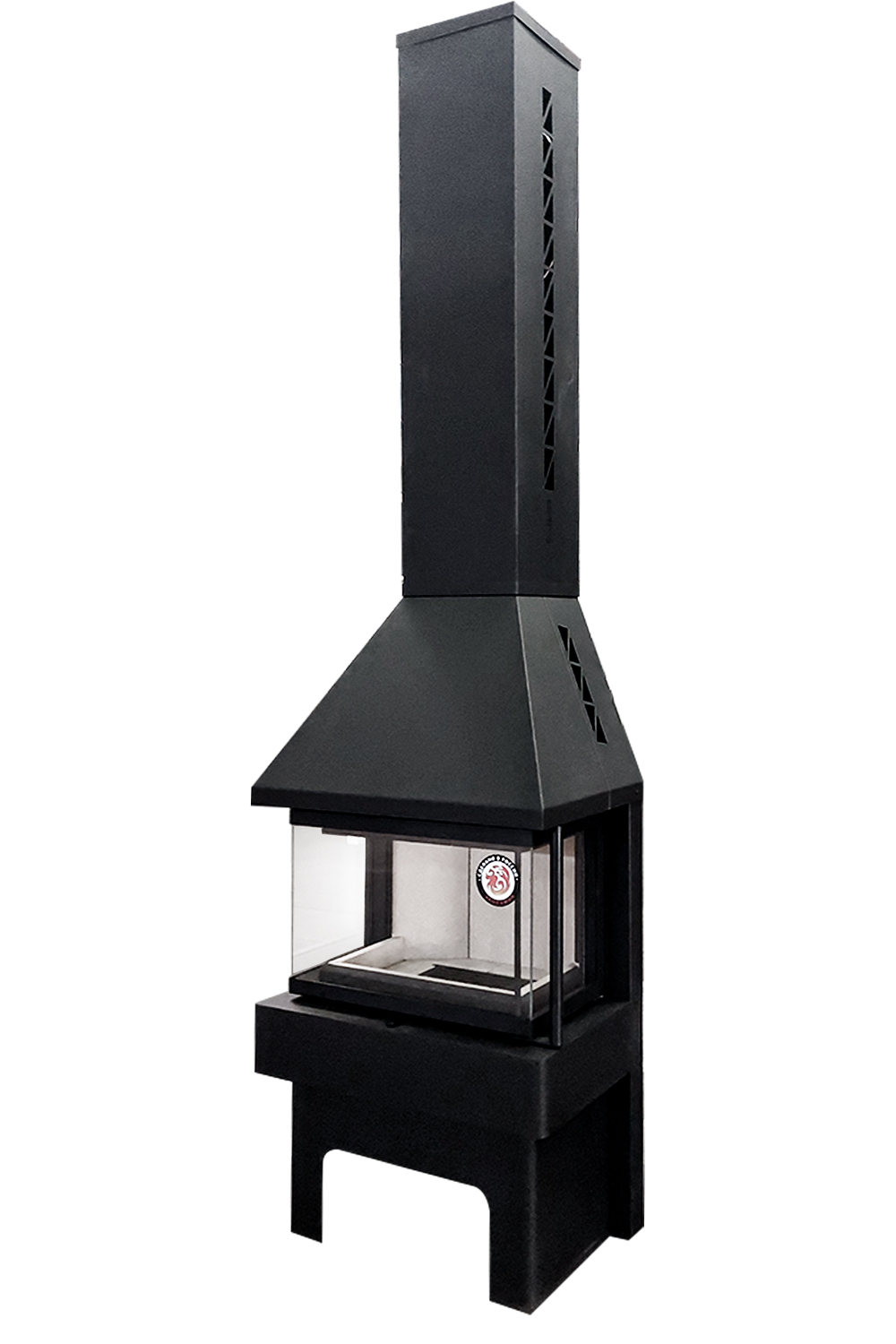 Преимущества данной модели: обзор огня с трех сторон, система - чистое стекло, вторичный дожиг, который позволяет печи работать в режиме экономного горения. Футеровка исполнена из вермикулита, термостойкая стеклокерамика (Т до 750 С),