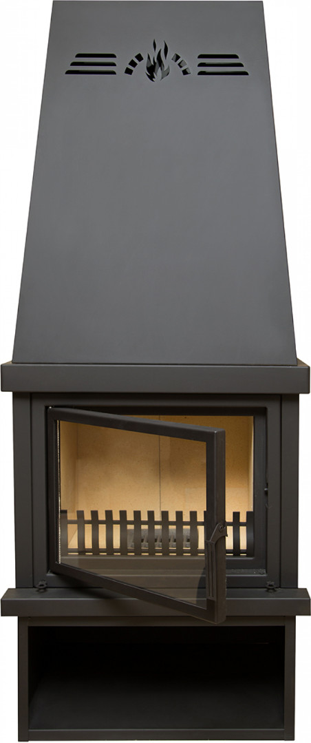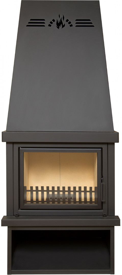 Легкий камин-моноблок, быстрый легкий монтаж и подсоединение к дымоходу. Быстрый конвекционный нагрев помещения площадью 50-100 м2 в зимнее время за 2-3 часа. Большая топочная дверка со стеклом. Идеально подходит для среднего дачного дома как основной источник тепла осенью и весной. Размер поленьев до 50 см. Подсоединение к дымоходу сзади Время горения 3-5 часов