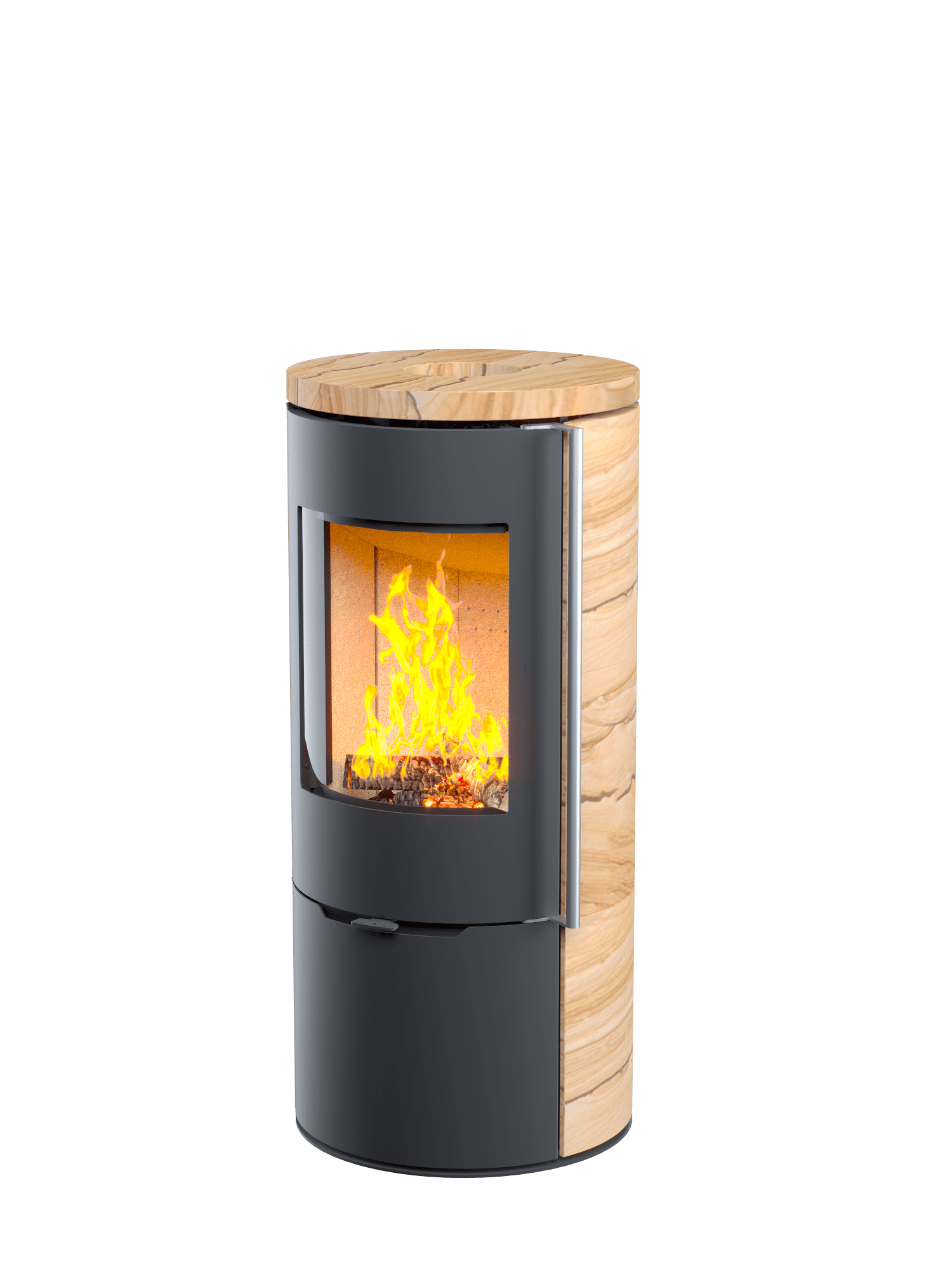 Печь-камин АСТОВ ASTOV R1.0 К с каменными панелями 4 варианта: Талькомагнезит, Крема беж, Песчанник, Пироксенит и круглой задней стенкой, c максимальной панорамой пламени создает прекрасный вид на огонь из любой точки помещения. Лаконичный дизайн, минимальная сложность ввода в эксплуатацию и минимальная нагрузка на установочную поверхность.