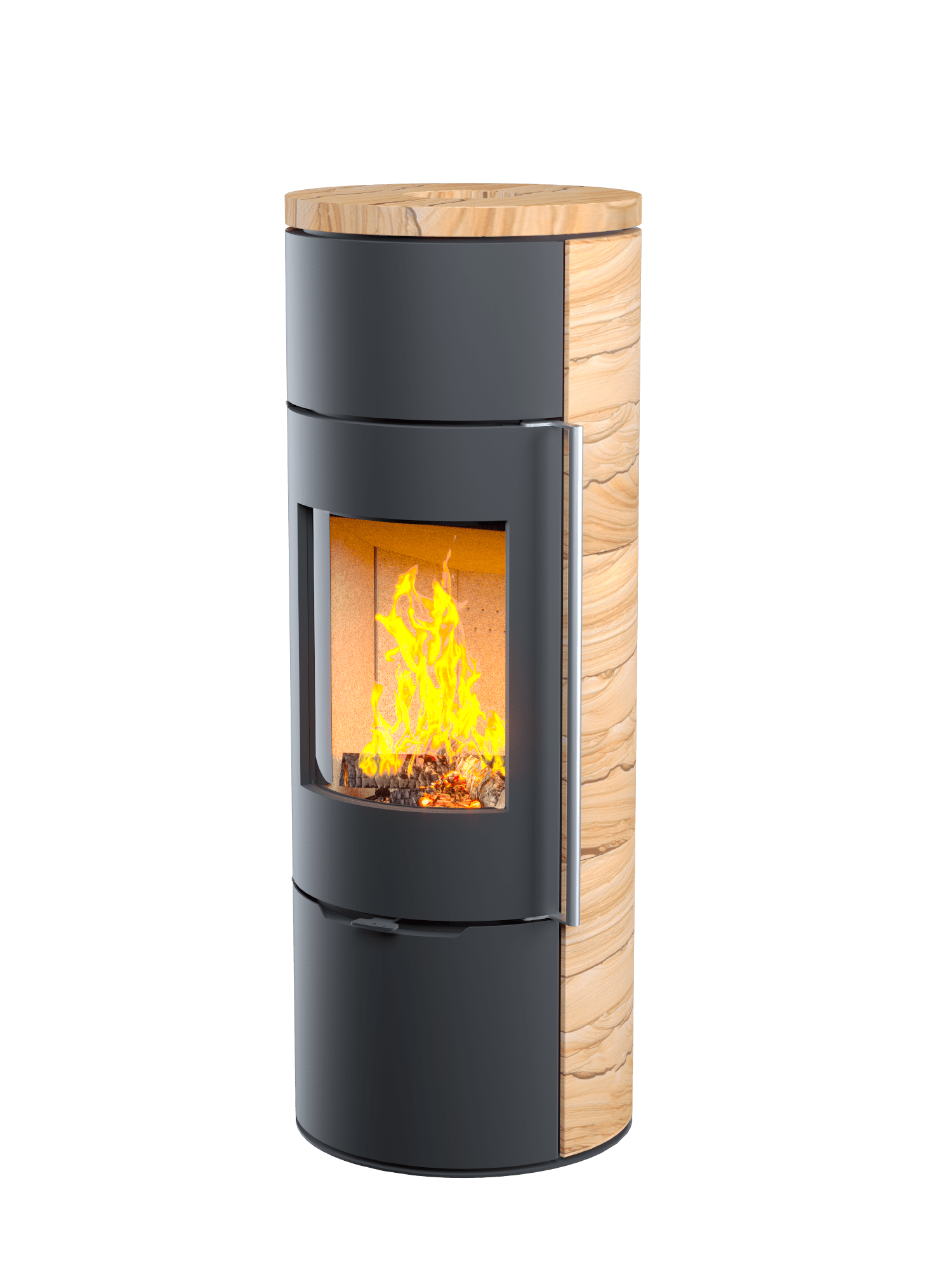 Печь-камин АСТОВ ASTOV R1.0 L К с каменными панелями 3 варианта: Талькомагнезит, Крема беж, Песчанник и круглой задней стенкой, c максимальной панорамой пламени создает прекрасный вид на огонь из любой точки помещения. Лаконичный дизайн, минимальная сложность ввода в эксплуатацию и минимальная нагрузка на установочную поверхность.