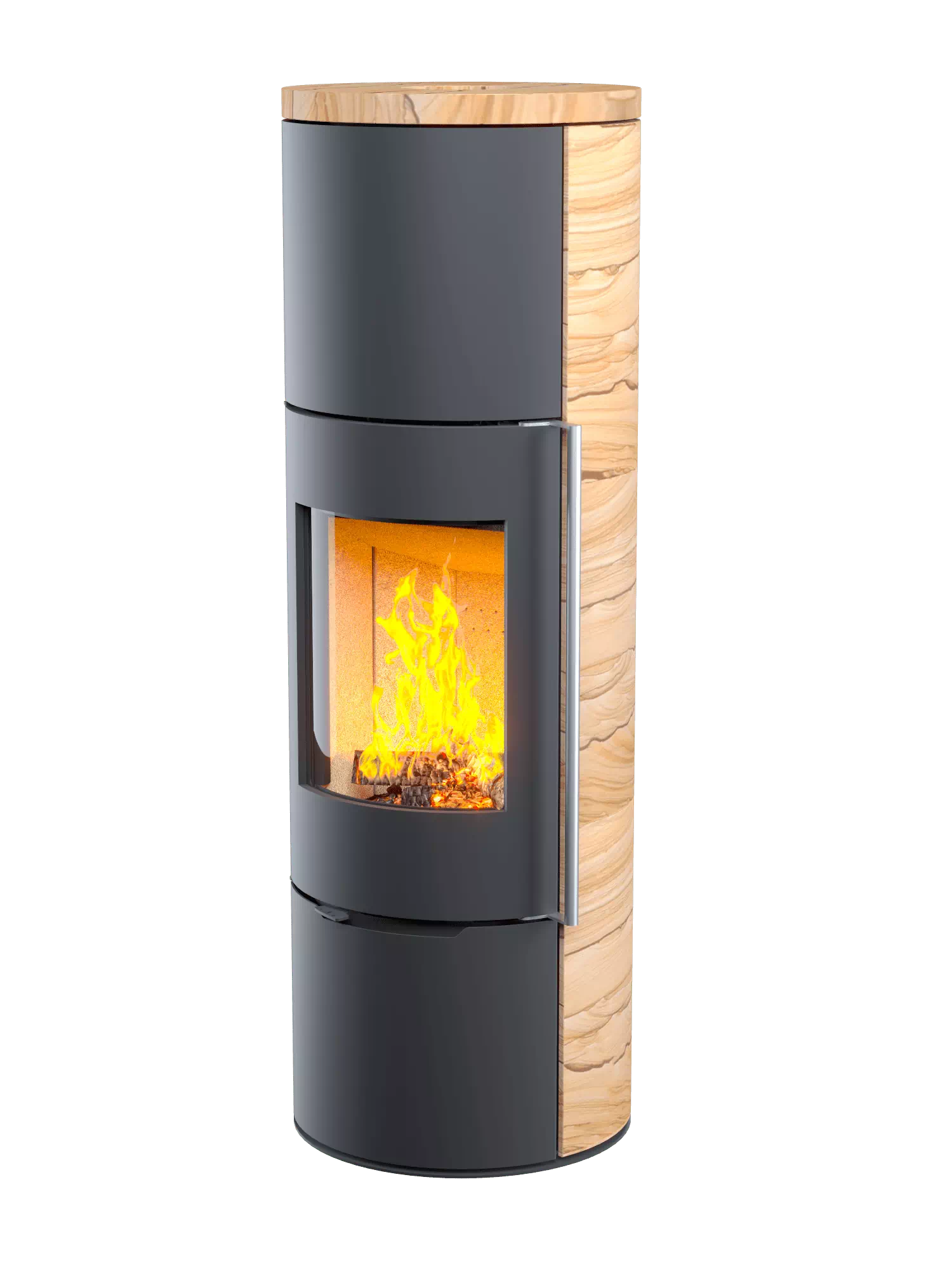 Печь-камин АСТОВ ASTOV R1.0 XL К с каменными панелями 3 варианта: Талькомагнезит, Крема беж, Песчанник и круглой задней стенкой, c максимальной панорамой пламени создает прекрасный вид на огонь из любой точки помещения. Лаконичный дизайн, минимальная сложность ввода в эксплуатацию и минимальная нагрузка на установочную поверхность.