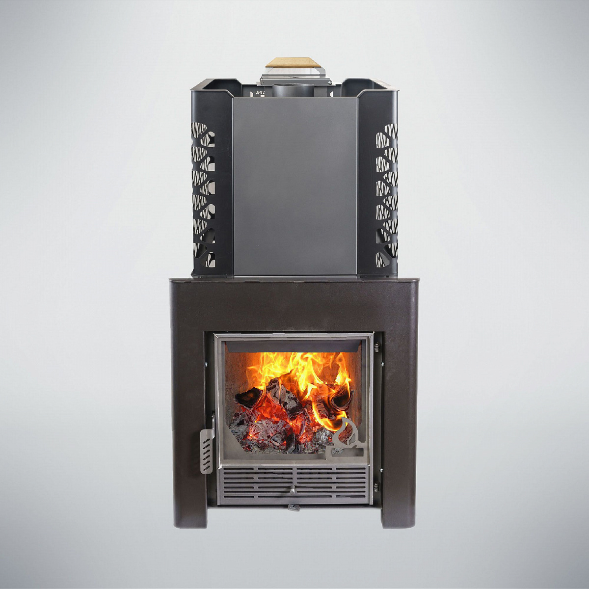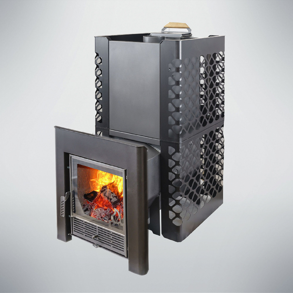 Максимальный нагрев камня: Закрытая каменка позволяет нагревать камни до 600 градусов, обеспечивая интенсивное прогревание парной и создание уникальной атмосферы.