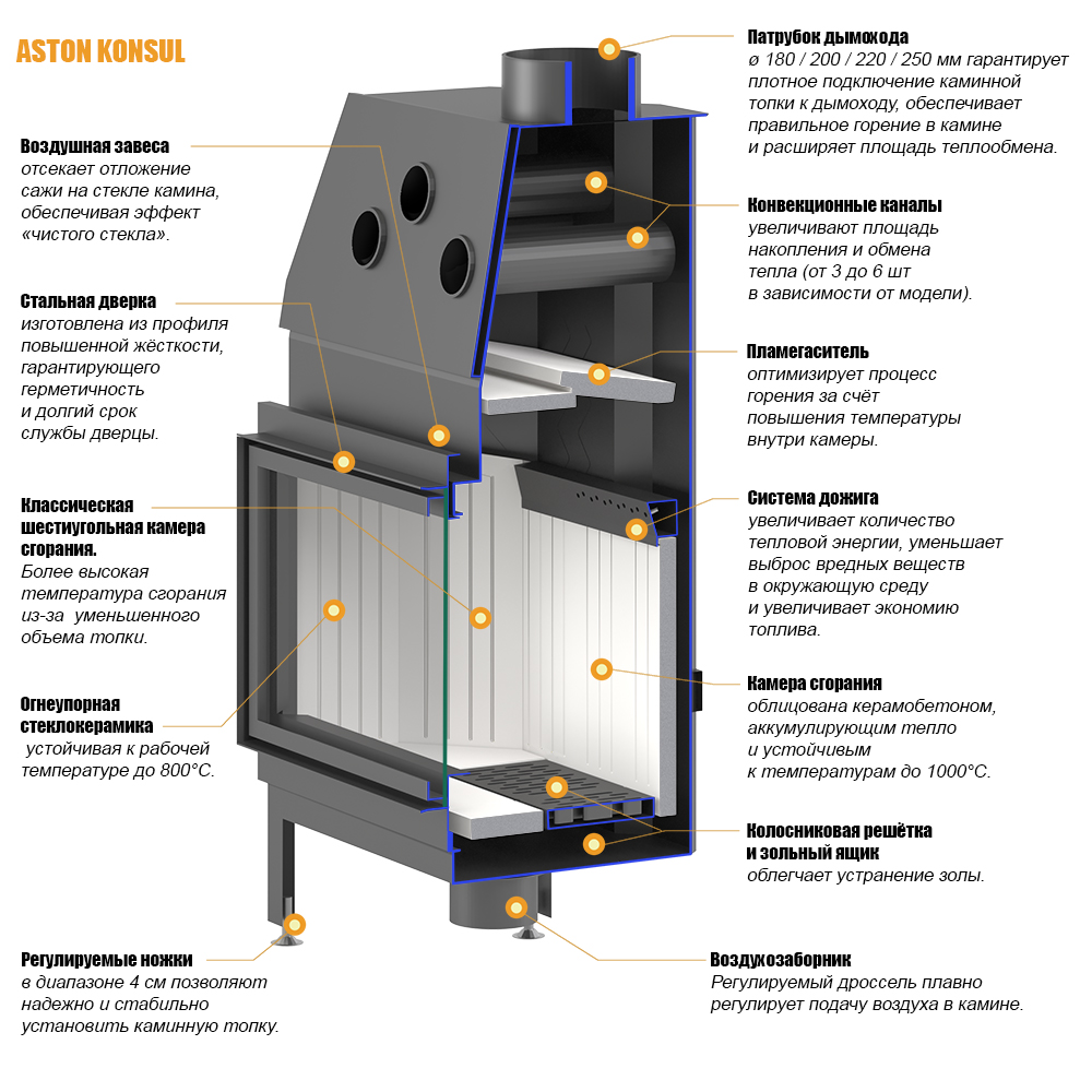 Каминные топки ASTON KONSUL – это максимально оптимизированный процесс эксплуатации.