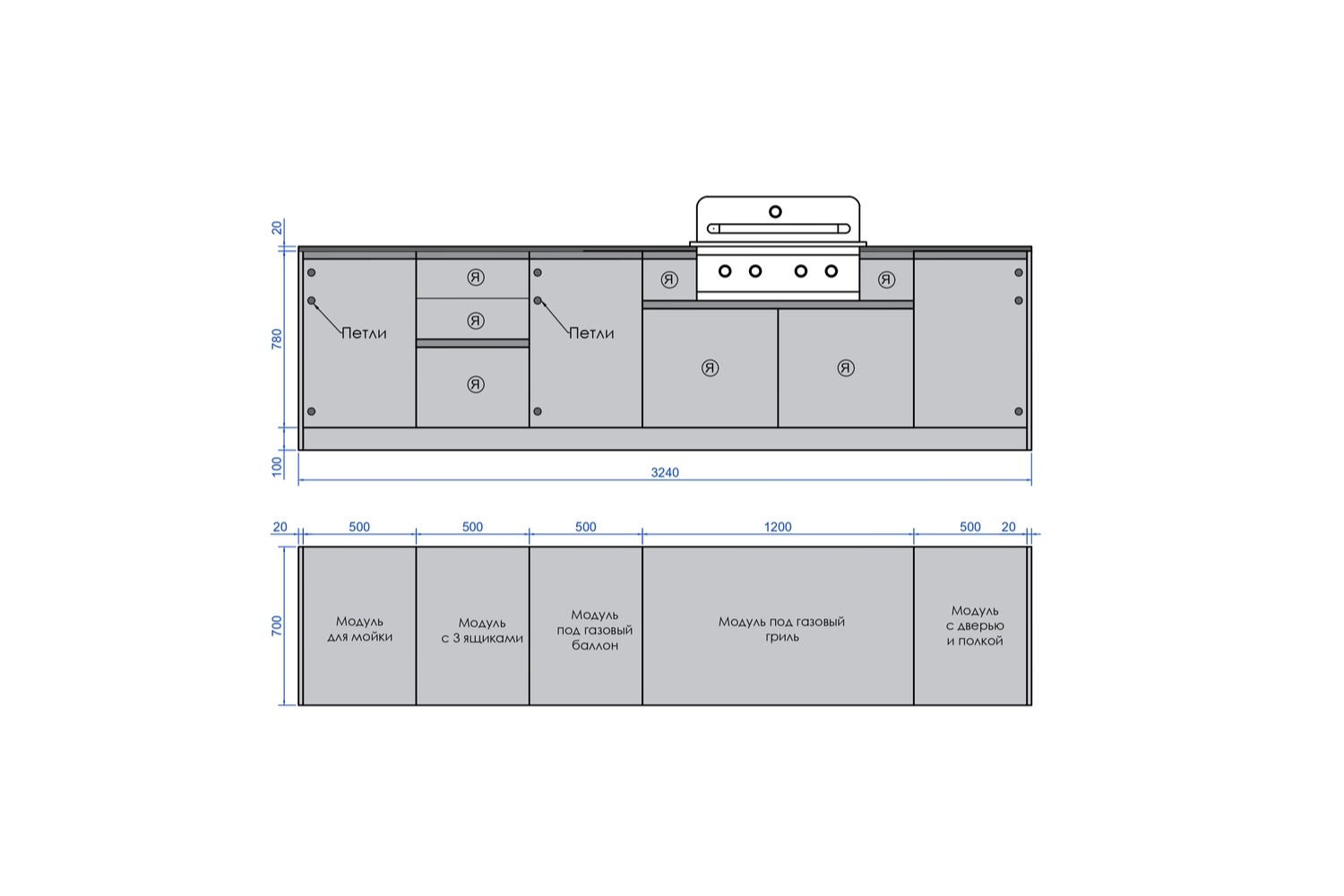 Договор заключается в момент оплаты Покупателем товара ТОЛЬКО в ОФЛАЙН-МАГАЗИНЕ. Делая предварительный заказ, Покупатель заверяет, что ознакомился и согласен с Политикой компании, она ему ясна и понятна.Кухня ASTOV BBQ № 18 (ширина 3240 мм)