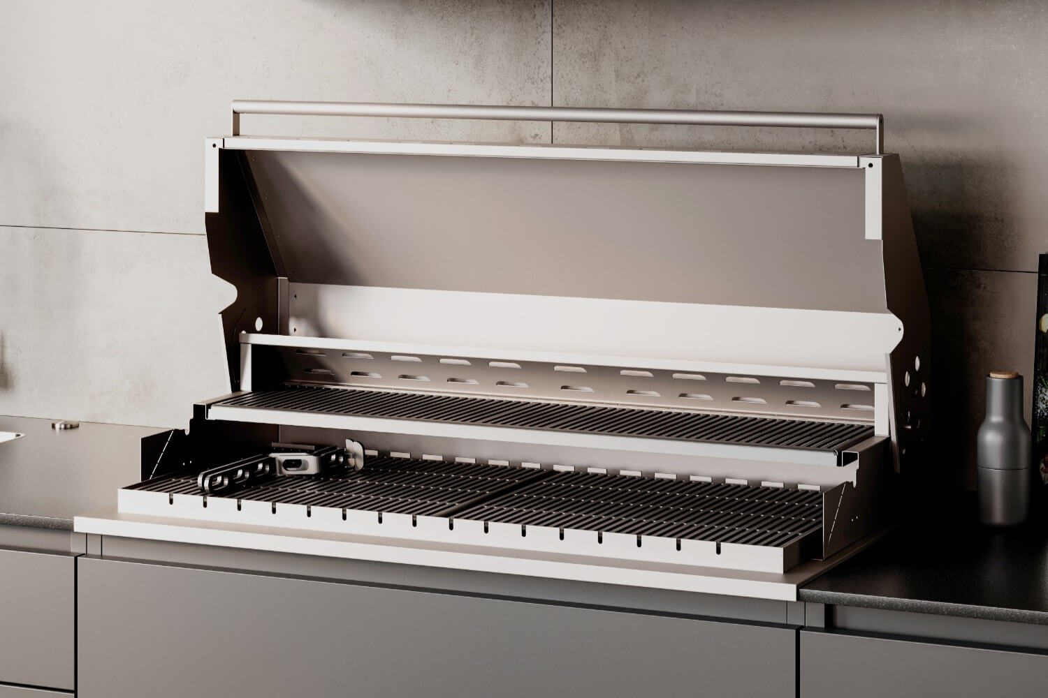 Наш гриль собственного производства позволяет с удобством приготовить различные блюда от простейших сосисок до сложной рваной текстуры различного мяса длительного томления.