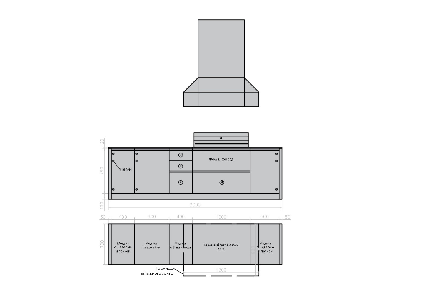 Договор заключается в момент оплаты Покупателем товара ТОЛЬКО в ОФЛАЙН-МАГАЗИНЕ. Делая предварительный заказ, Покупатель заверяет, что ознакомился и согласен с Политикой компании, она ему ясна и понятна.Кухня ASTOV BBQ № 1 (ширина 3000 мм)