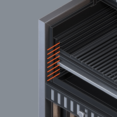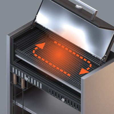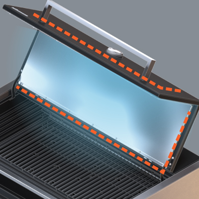 Крышка и боковины гриля термоизолированы, тем самым наружные части не нагреваются до высоких температур. Гриль дольше сохраняет тепло, и вы сможете экономить уголь при эксплуатации.