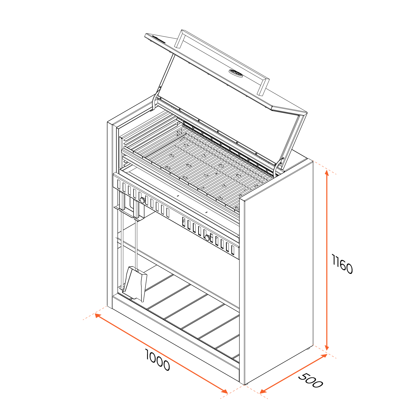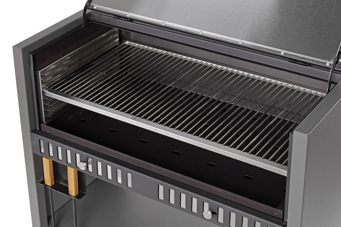 Угольный ящик изготовлен из стали 3 мм, что гарантирует грилю очень долгий срок службы.