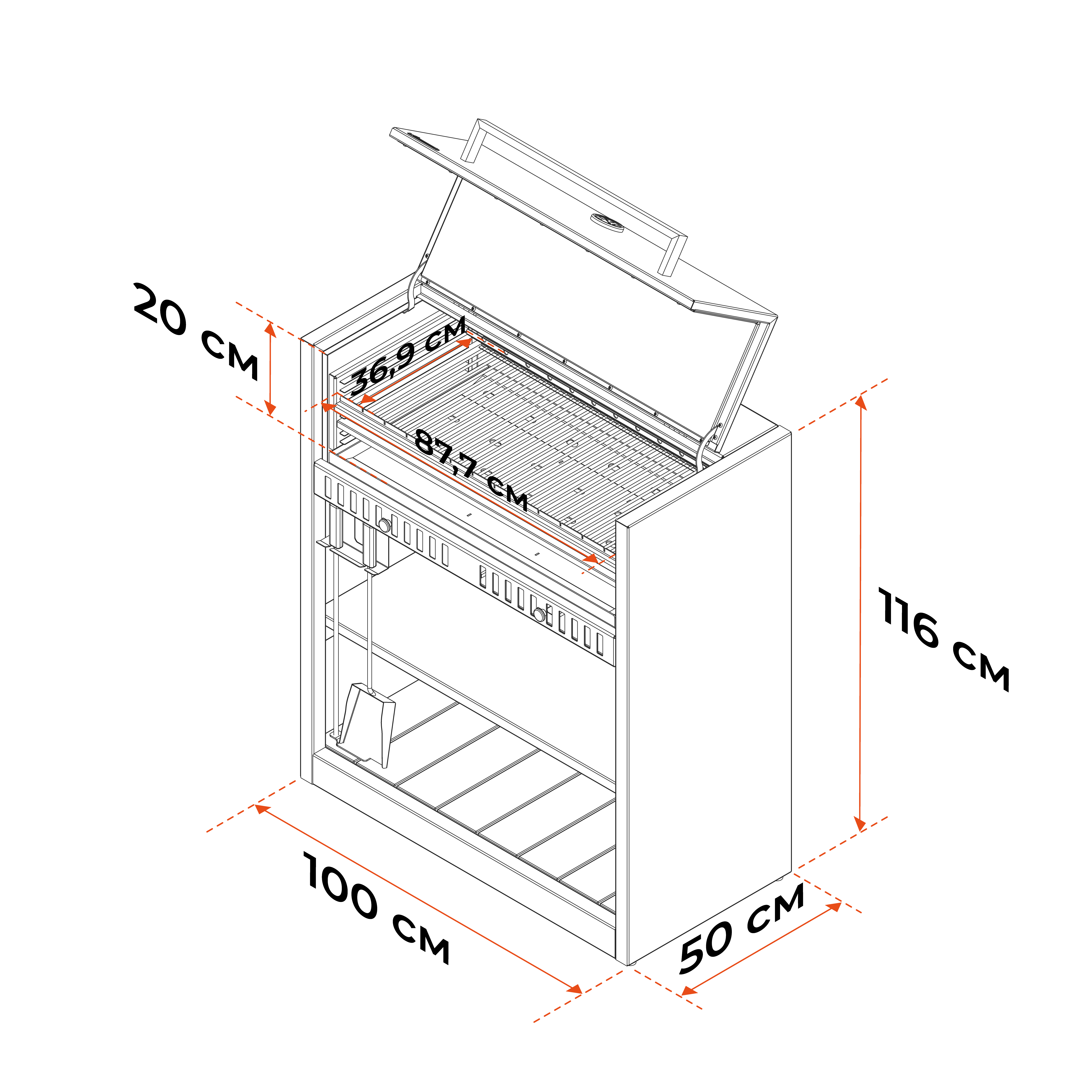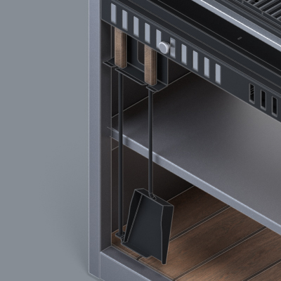 Основание топки гриля соответствует по высоте другим модулям серии.
