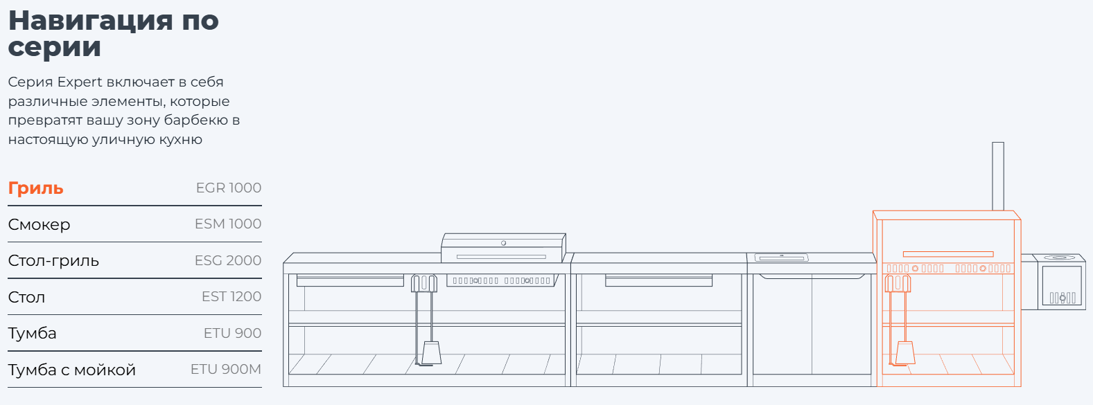 Серия Expert включает в себя различные элементы, которые превратят вашу зону барбекю в настоящую уличную кухню Гриль