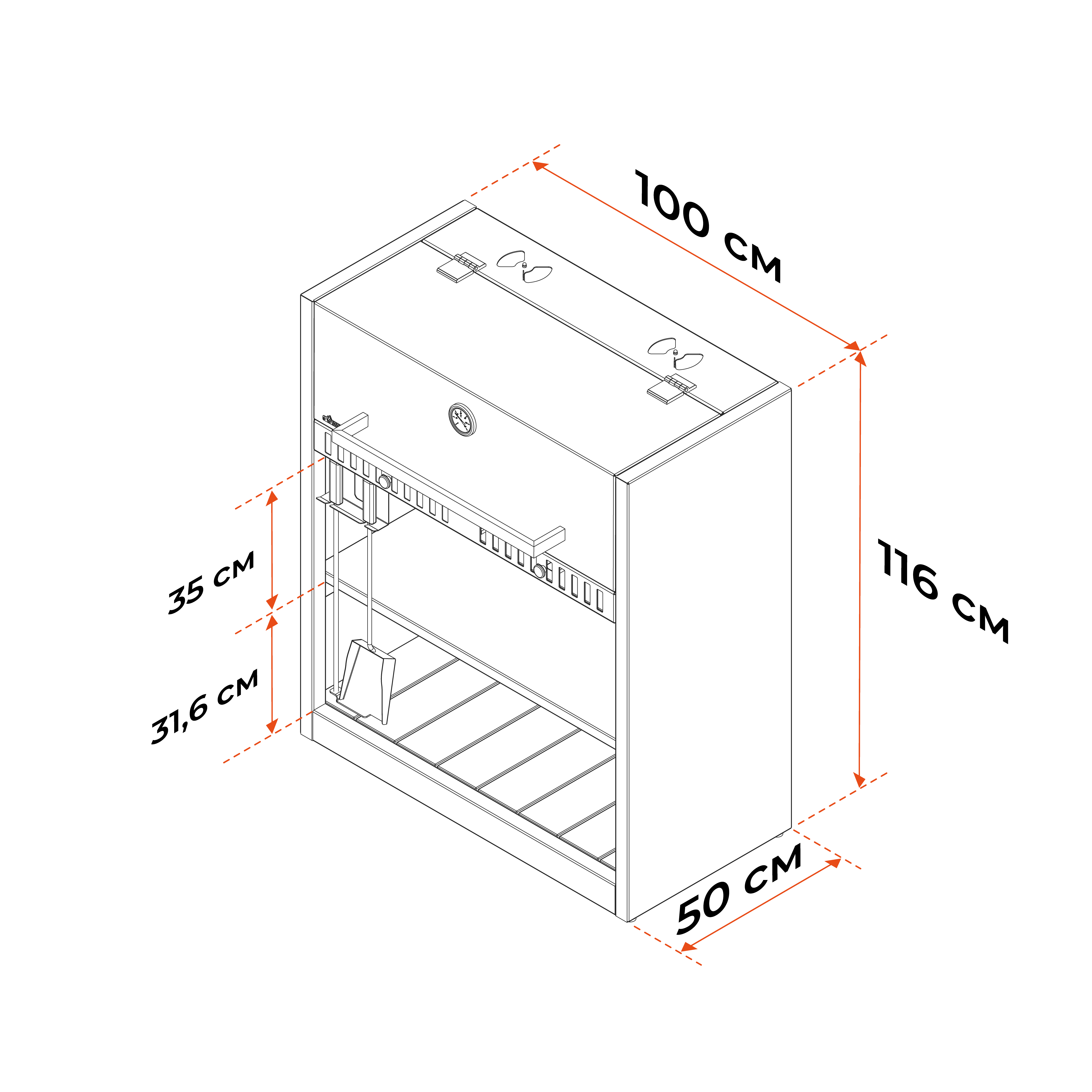 В собранном виде гриль имеет ширину 1 метр и глубину 50 сантиметров.